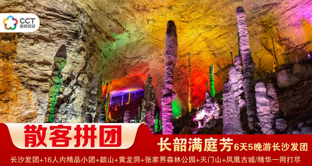 D3長沙出發(fā)乘(高鐵)赴張家界(2h抵達,更方便更快捷)--下午游溶洞全能冠軍(黃龍洞景區(qū))--晚觀(民族大戲)魅力湘西晚會