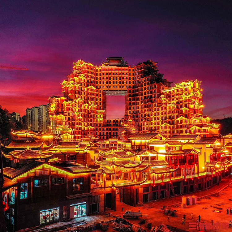 它將獨特的土家族建筑奇觀與現(xiàn)代光影科技(如全息投影、互動燈光秀)完美結(jié)合,打造出極具沉浸感的夜間文化體驗場景,并通過引入豐富的地方非遺展示、特色美食集市與沉浸式演藝活動,成功激活區(qū)域夜游經(jīng)濟,為游客提供了傳統(tǒng)與現(xiàn)代交織的全新文旅樣本,引領(lǐng)了沉浸式文化夜游的新風潮。