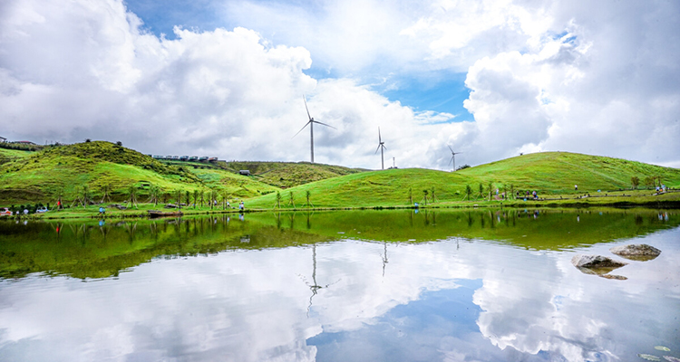 3、風(fēng)車(chē)群:山脊之上,數(shù)十座白色風(fēng)車(chē)擎天而立,巨大的葉片在風(fēng)中悠然轉(zhuǎn)動(dòng),與翠綠的草地相互映襯,構(gòu)成了壯觀而又浪漫的風(fēng)景線(xiàn)。沿著風(fēng)車(chē)步道漫步,微風(fēng)拂面,風(fēng)聲、風(fēng)車(chē)轉(zhuǎn)動(dòng)聲交織在一起,宛如奏響了一曲自然的樂(lè)章。