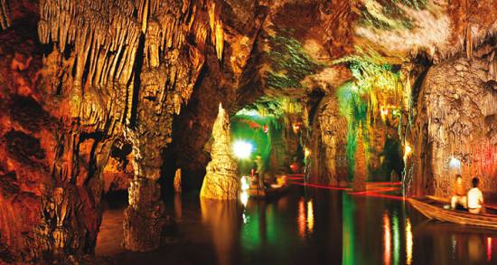 九天洞九天洞總面積250多萬平方米,折合4萬多畝。這樣一個(gè)大溶洞,比堪稱世界第一洞的利川溶洞還大3倍。據(jù)《環(huán)球天然奇觀》一書介紹,南斯拉夫的波斯托伊納大巖洞與美國的巴哈馬大藍(lán)洞,都稱為"世界上最大的洞",還有古巴的貝拉雅馬爾大巖洞與我國貴州、湖北神農(nóng)架一些溶洞,也都被稱為"世界或中國最大的溶洞"??墒沁@些溶洞,同九天洞比較,都會(huì)感到遜色不少。1988年,中國科學(xué)地質(zhì)研究所巖溶與地下水研究室主任張壽越教授兩次來九天洞考察,他認(rèn)為該洞是亞洲第一大洞,于是他給九天洞題詞:"滴石鑄玄女,暗河鏤九天"。1988年9月下旬,來自美國、英國與比利時(shí)的15位洞穴專家對九天洞作深入研究,連續(xù)7天7夜住在洞內(nèi)全面考察。通過考察,他們一致認(rèn)為九天洞是世界奇跡,不僅具有很高的旅游價(jià)值,同時(shí)還有很高的科研價(jià)值。