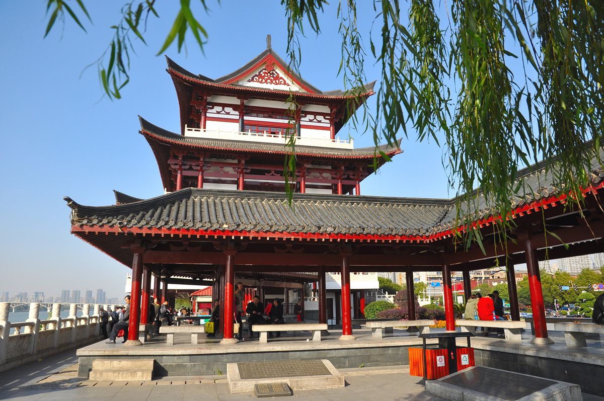杜甫江閣位于湖南省長(zhǎng)沙市河?xùn)|城區(qū)西湖橋,地處湘江路中段和西湖路交界處,臨湘江為湘江風(fēng)光帶的一部分,與橘子洲、岳麓山隔江相望,距天心閣不足一千米。