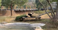 靈長類動物館占地2214平方米,飼養(yǎng)了狒狒、白眉長臂猿、白頰長臂猿、食蟹猴、綠猴、黑白猶猴等靈長類動物。場地依山就勢,展覽廳寬敞,通風良好,有室外活動場。每個場館鄰活動一側均布置成石山景觀,與整個外部運動場自然景觀環(huán)境較好的融為了一體。場館的外部裝飾上采用了原生態(tài)的樹干和卵石作為立面裝飾材料。游客與猴群之間被壕溝水面隔離,確保了游客與猴群雙方的安全。